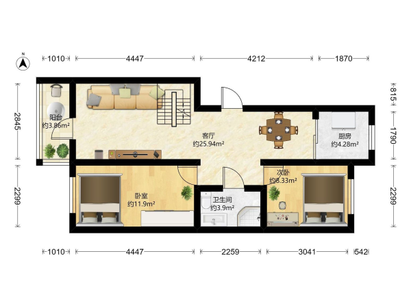 房屋戶型: 3 室2廳 1 廚1衛(wèi)