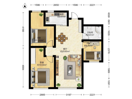 房屋戶型: 3 室2廳 1 廚1衛(wèi)